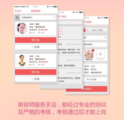 2、為了保障您的合法權(quán)益,本網(wǎng)站將不定期對(duì)美容師資質(zhì)及提供的美容服務(wù)進(jìn)行考核,但您理解考核不可能每時(shí)每刻都在進(jìn)行。所以,在確定預(yù)約前,請(qǐng)務(wù)必仔細(xì)閱讀美容師與服務(wù)項(xiàng)目的宣傳資料,并對(duì)其做出準(zhǔn)確判斷。本平臺(tái)對(duì)美容師個(gè)人提供的宣傳和承諾并不承擔(dān)法律上的責(zé)任。